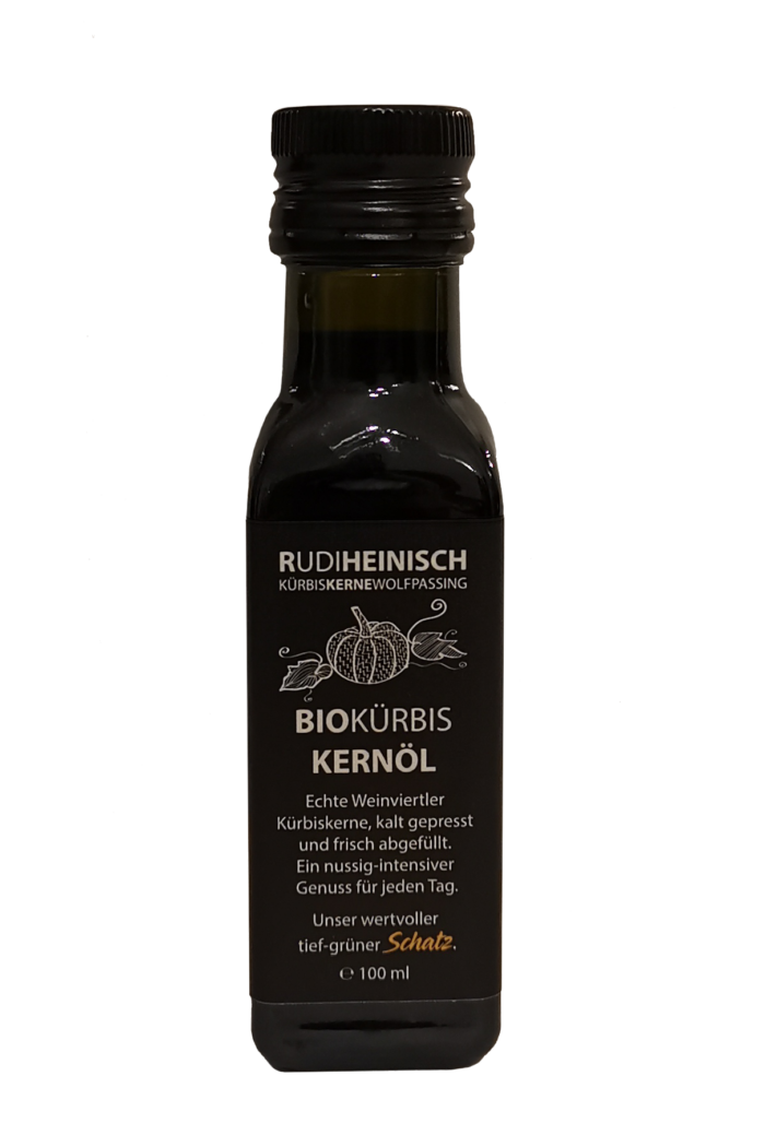 Frisch gepresstes Kernöl aus original Weinviertler Bio-Kürbissen! Der nussige Duft verführt vom ersten bis zum letzten Tropfen, der intensive und einzigartige Geschmack verleiht Ihren Gerichten den letzten Schliff. Nicht nur Salat gewinnt durch unser kaltgepresstes Bio-Kürbiskernöl – kurz vor dem Servieren über der Eierspeise oder als Kernölbutter auf den Schweinemedallions bekommen pikante Gerichte ein ganz neues Gesicht. Aber auch Süßspeisen profitieren von der nussigen Geschmacksbombe: fast schon als Klassiker kann man Vanilleeis mit Kernöl und Krokant bezeichnen! Oder auch ein Kernöl-Kuchen macht auf dem Jausentisch ordentlich was her.